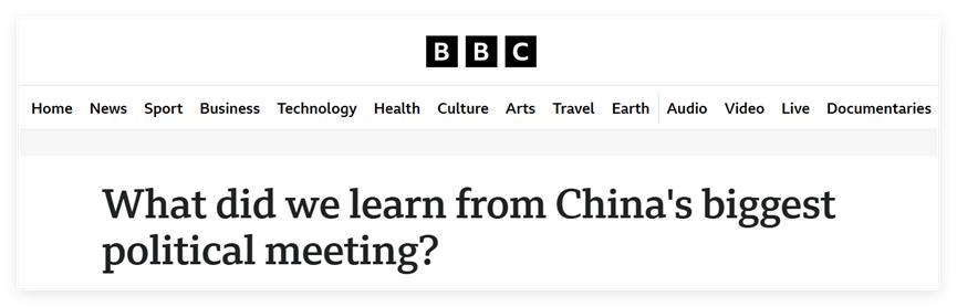 在这篇标题为“我们从中国这一重大的政治会议中了解到了什么?”的报道中,BBC开门见山地表示,在当下动荡的国际局势面前,中国希望通过两会展现出自己的稳定,希望成为一座“稳定的灯塔”。